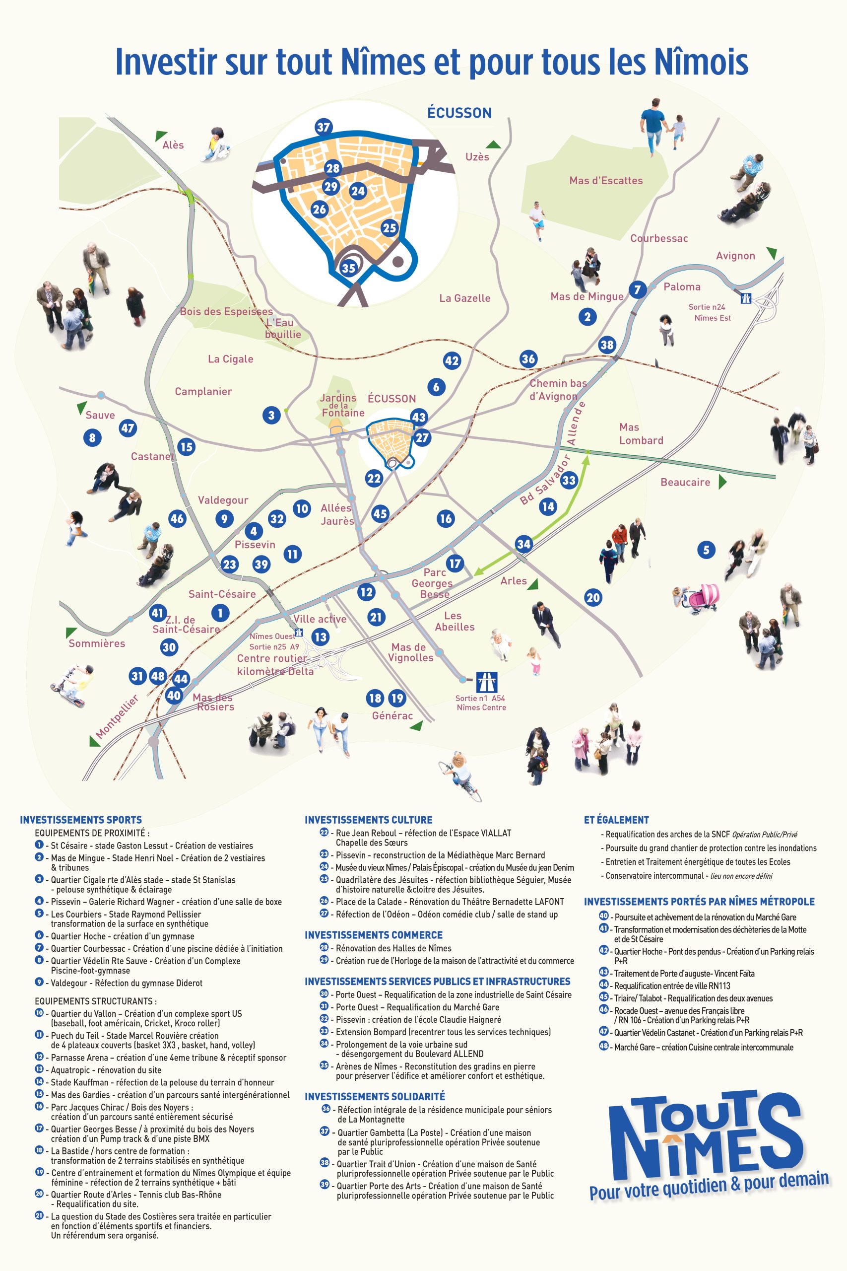 50 investissements de proximité programmés et identifiés dans tous les quartiers de la ville (culture, sport, services publics, infrastructures et équipements de solidarité)
